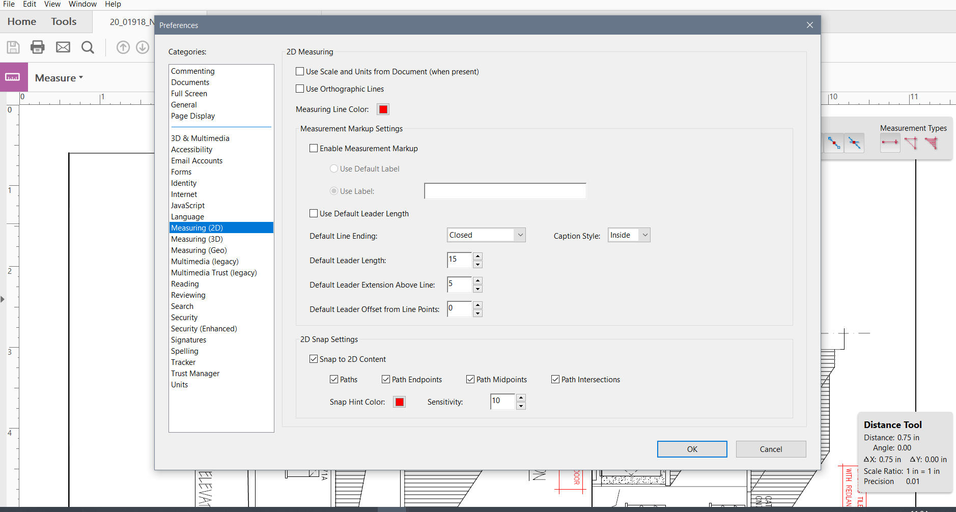 Select which measurement type to use. By the way Acrobat has had measuring tools since Acrobat 8 pro but the location and function of the measuring feature may be different in versions prior to Acrobat X. Perpendicular distance between two straight edges. Edit Answer for another -25 minute With the tool selected right-click the page and select Change Scale Ratio.