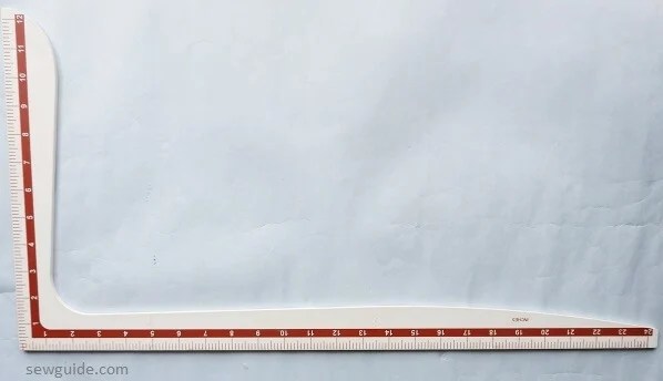 Measuring tool used to measure and draft lines on a fabric or pattern ~ For the pattern paper it is always better to have a long continuous roll or a big piece of paper. A large set square ruler is a measuring tool for sewing and pattern making to ensure lovely straight lines. Divide that by 2 and use a pin to poke through the fabric onto the tracing paper for each measurement taken to form half of the front sweater piece. I have a large set square which comes in handy as a grading ruler its basically a hard plastic triangle.